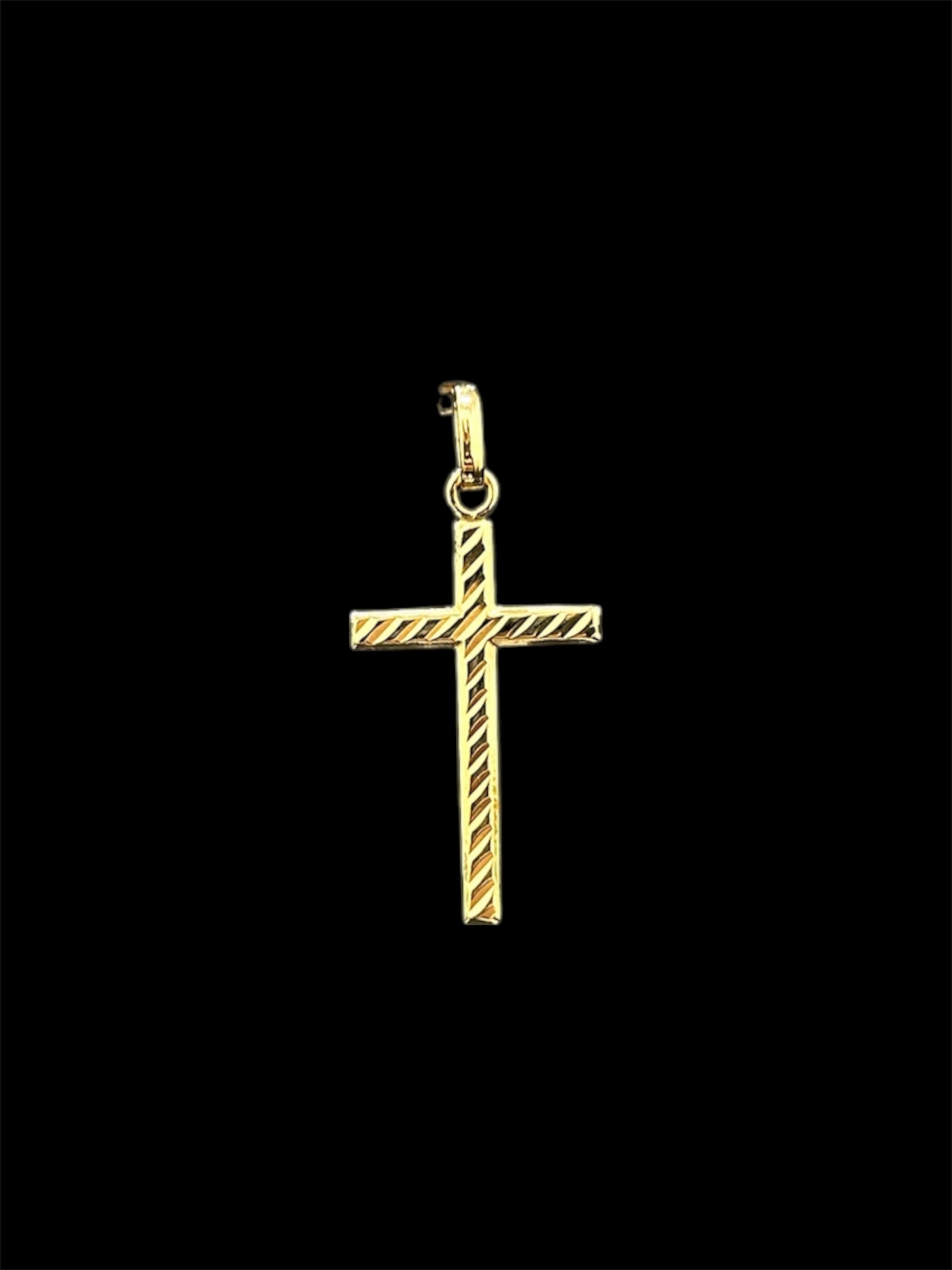 pendentif en forme de croix striée ,longueur 23 mm sur 14 mm de largeur,belière pour chaine max 4 mm