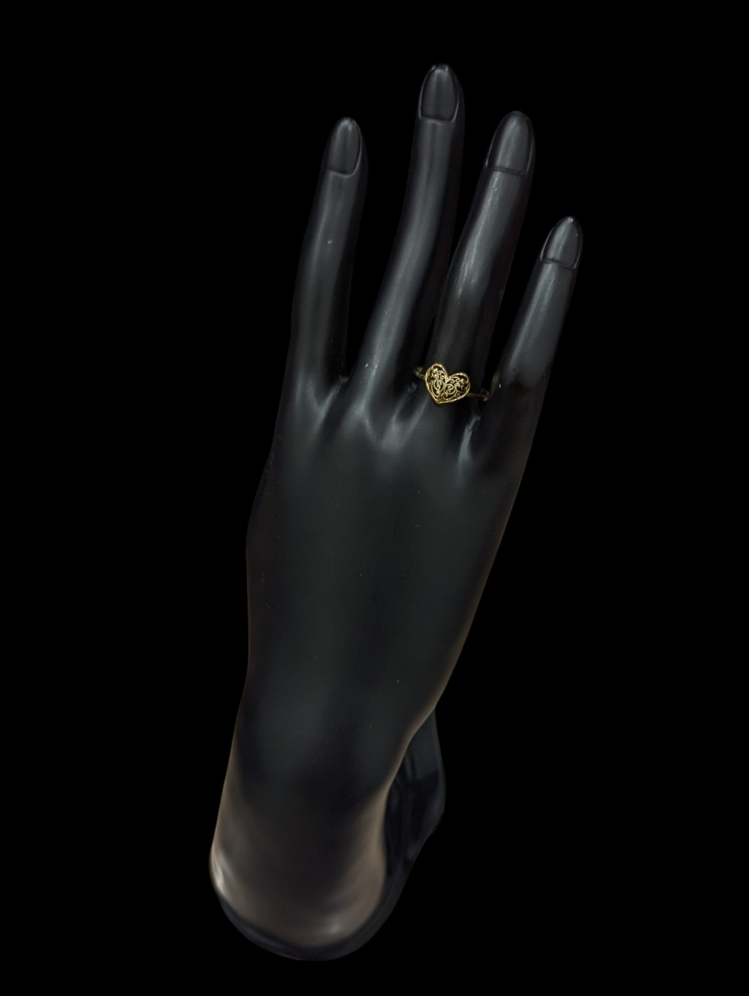 Bague en forme de coeur avec détails en filigrane, de diamètre 9 mm.