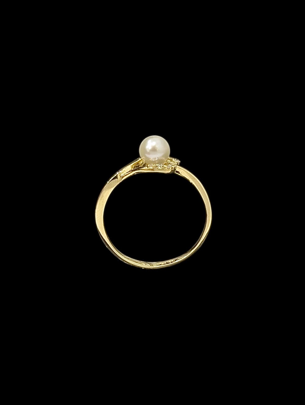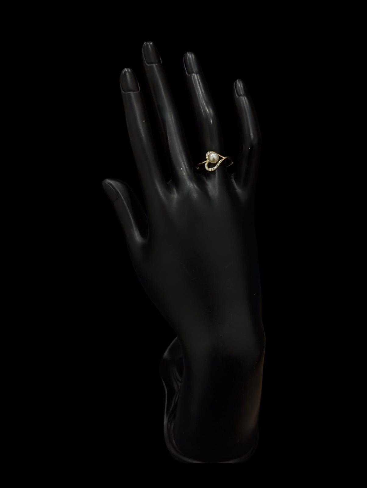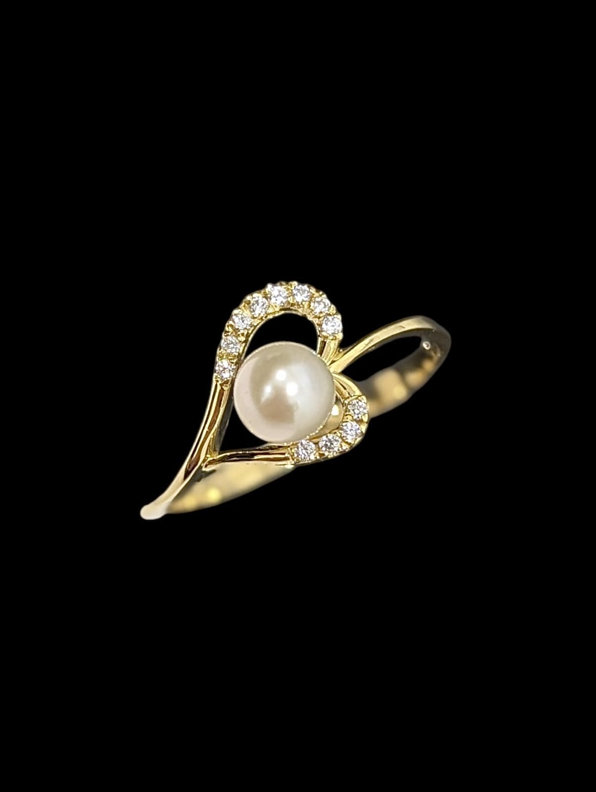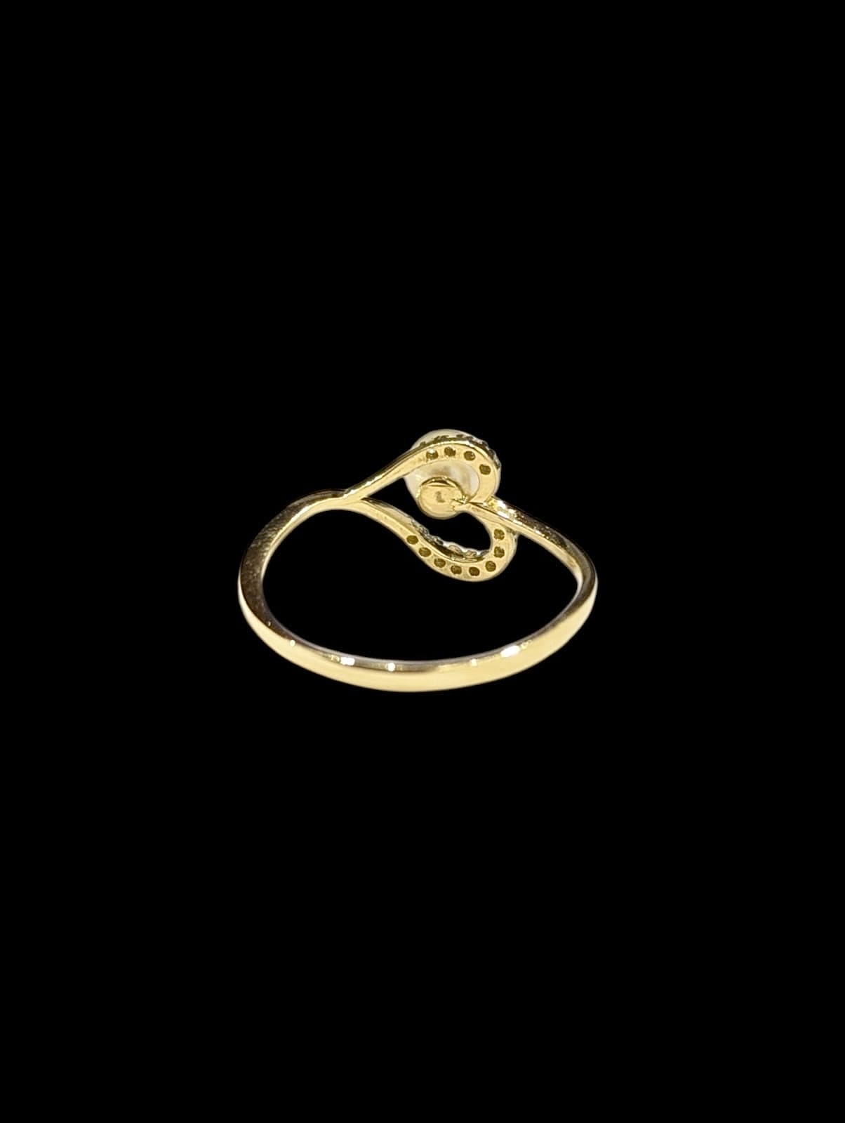 Bague en forme de coeur avec détails boule en nacre de diamètre 5 mm, de finition lisse et sertie de pierre en oxyde de zirconium de largeur max 11 mm.