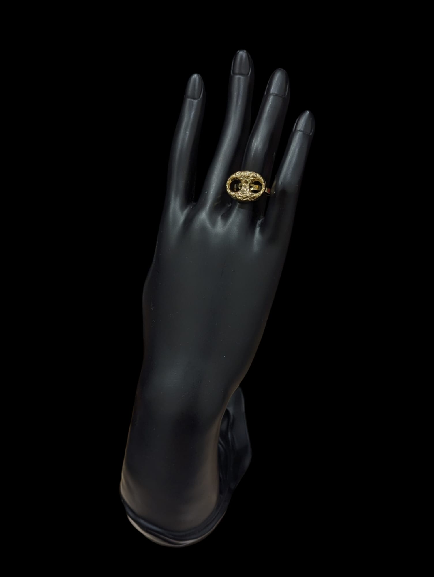 Bague en fourche grain de café de finition nuggets, à l’horizontale, de largeur 15 mm sur 19 mm de longueur.