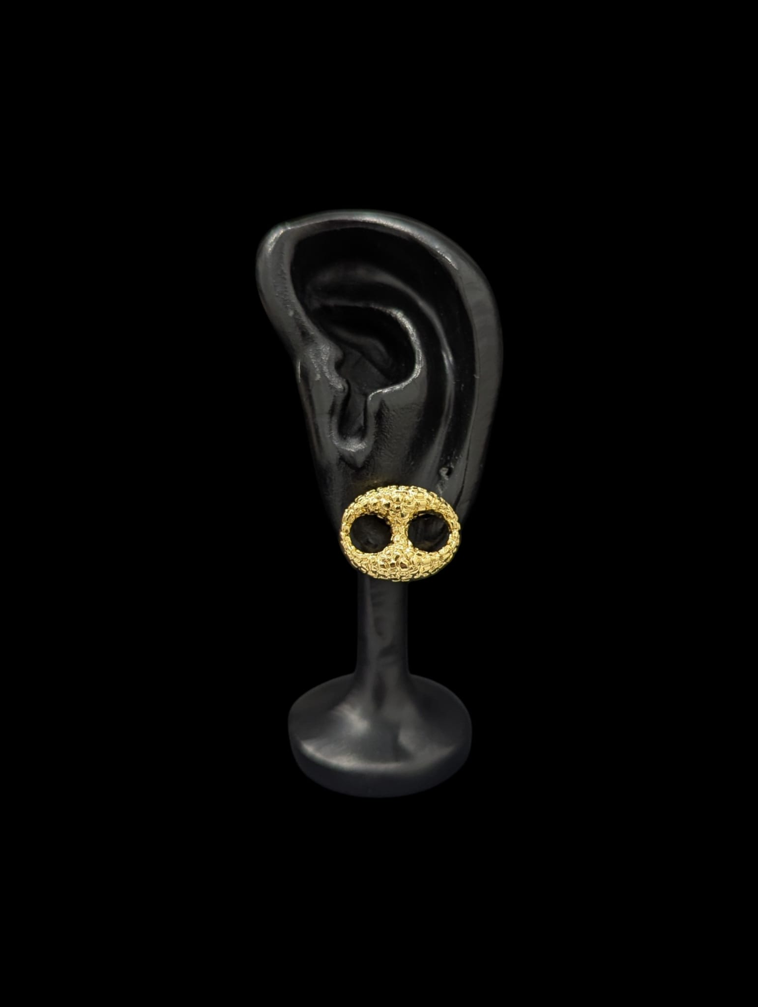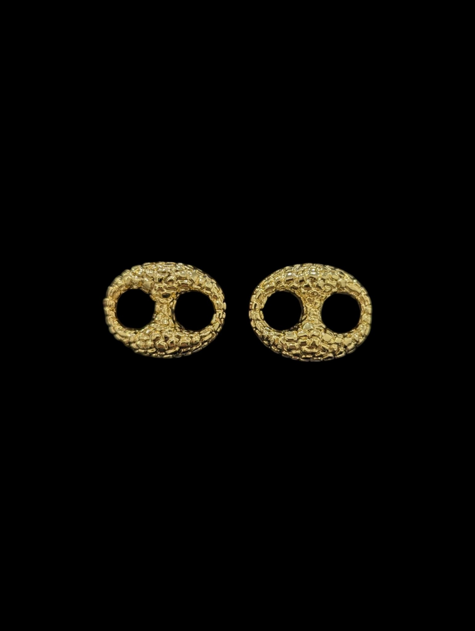 Boucles d’oreilles en or 18 carats type clou, motif grain de café style nuggets, mesurant 20 mm de longueur sur 15 mm de largeur. Un modèle au caractère affirmé, idéal pour apporter une touche originale et élégante.