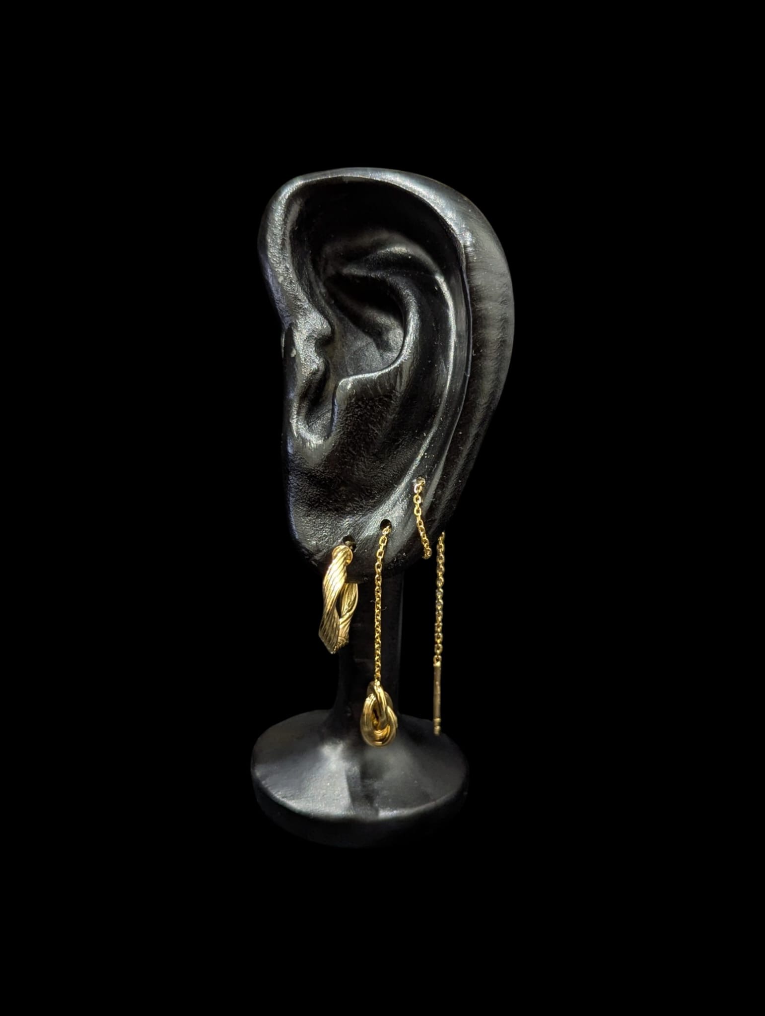 Boucles d’oreilles chaînette accompagnées de son motif forçat de finition lisse canellé de longueur 11 mm sur 6 mm de largeur. Boucles d’oreilles de longueur totale 10 cm.
