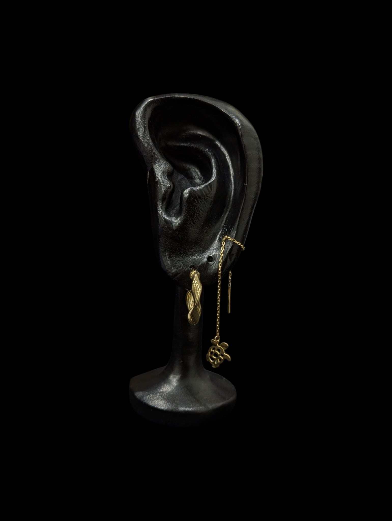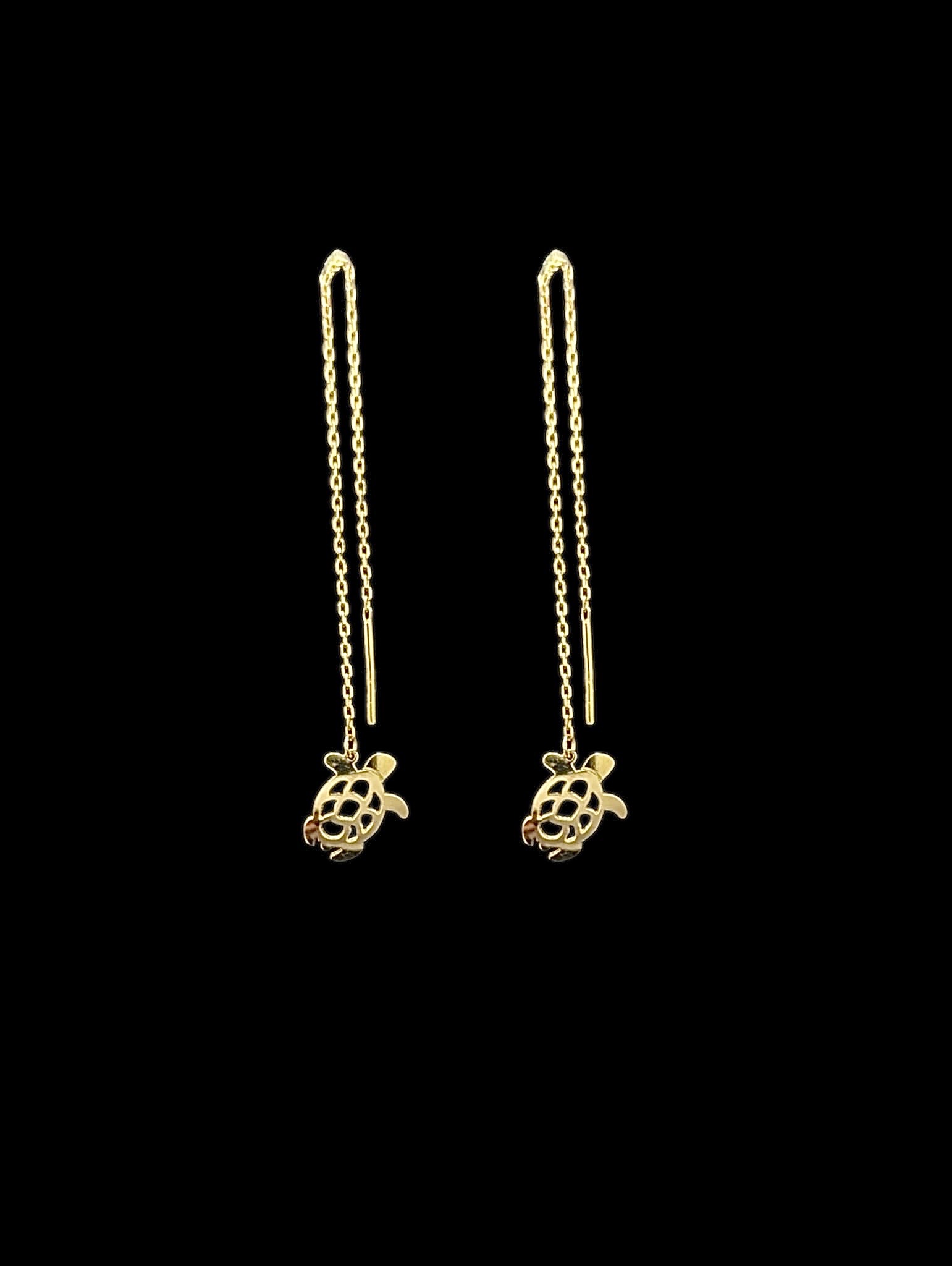 Boucles d’oreilles chainette accompagné de son motif tortue de diamètre 9 mm. Boucles d’oreilles de longueur totale 10 cm.