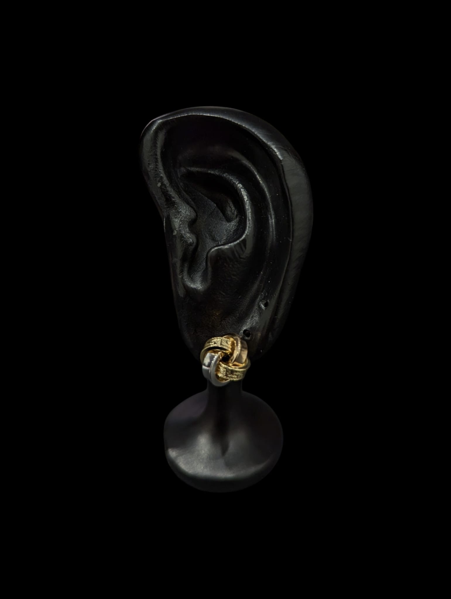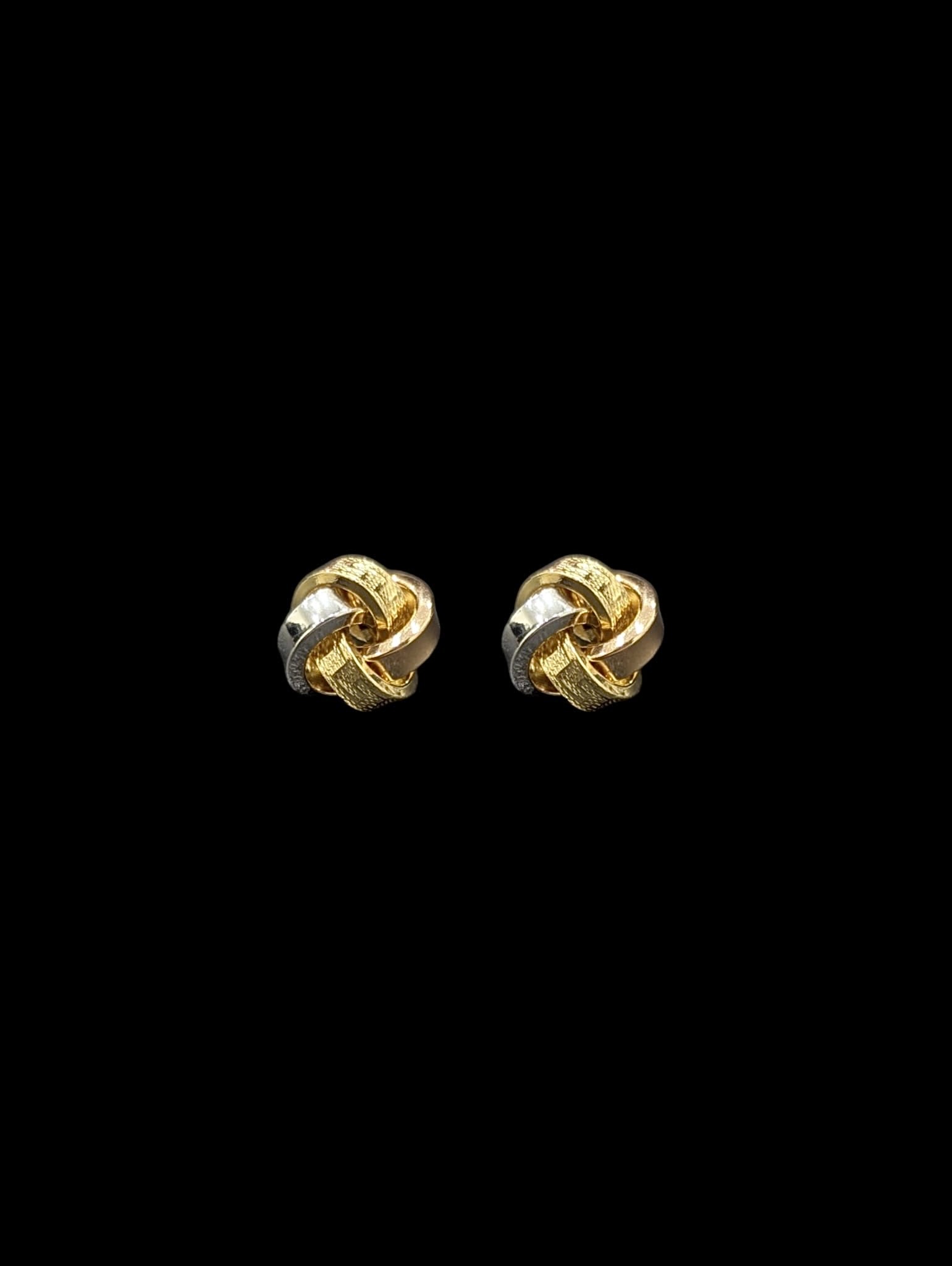 Boucles d’oreilles noeud 3 ors de finition lisse avec détails grec, de diamètre 12 mm.