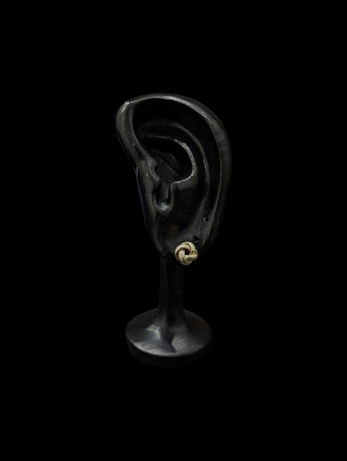 Boucles d’oreilles en clous motif noeud, finition sablé, de diamètre 8 mm.