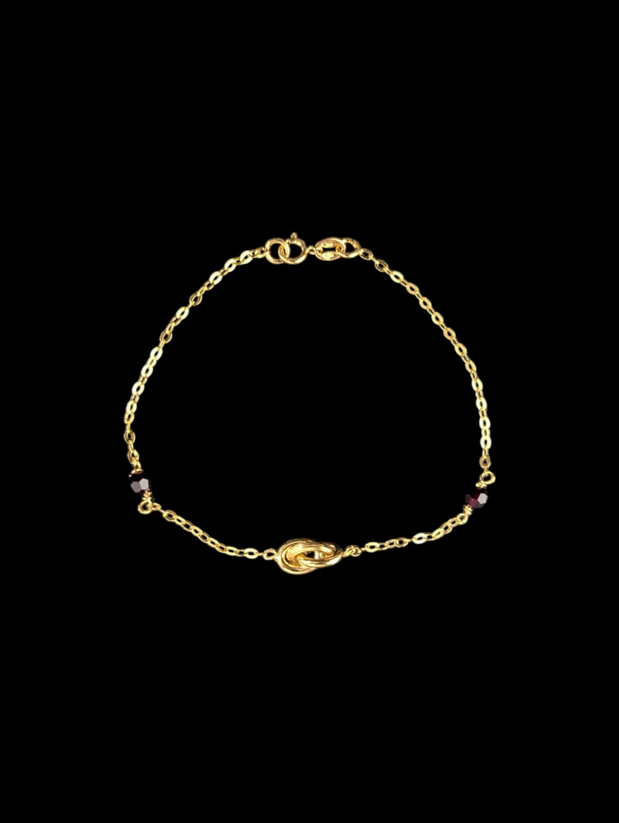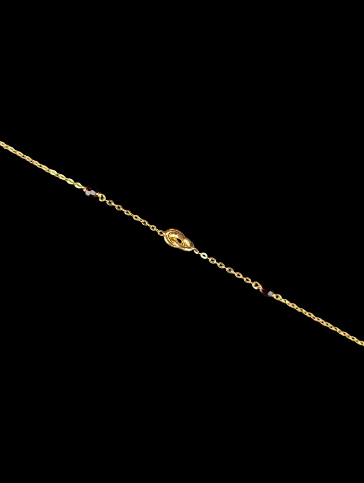 Bracelet maille forçat(1mm) avec 1 motif forçat noeud lisse canellé (5 mm) alternée avec 2 Grenats (3mm),longueur 18 cm,fermoir anneau ressort