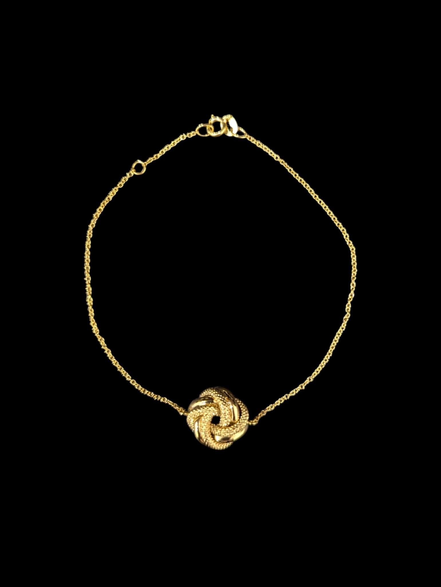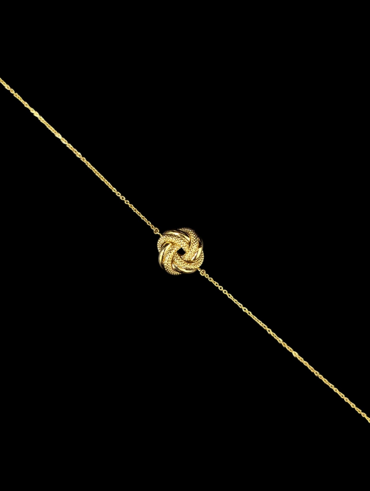 bracelet maille forçat avec 1 motif noeud lisse sablé L(14 mm) avec anneau reglable ,fermoir anneau ressort