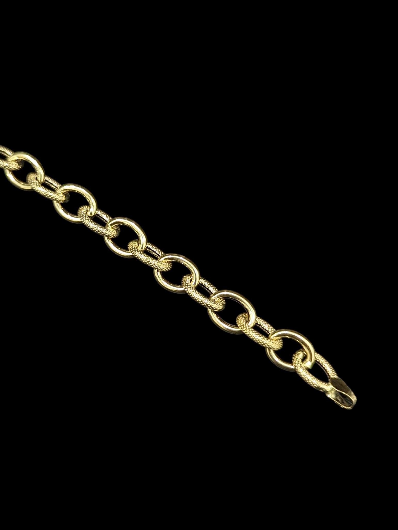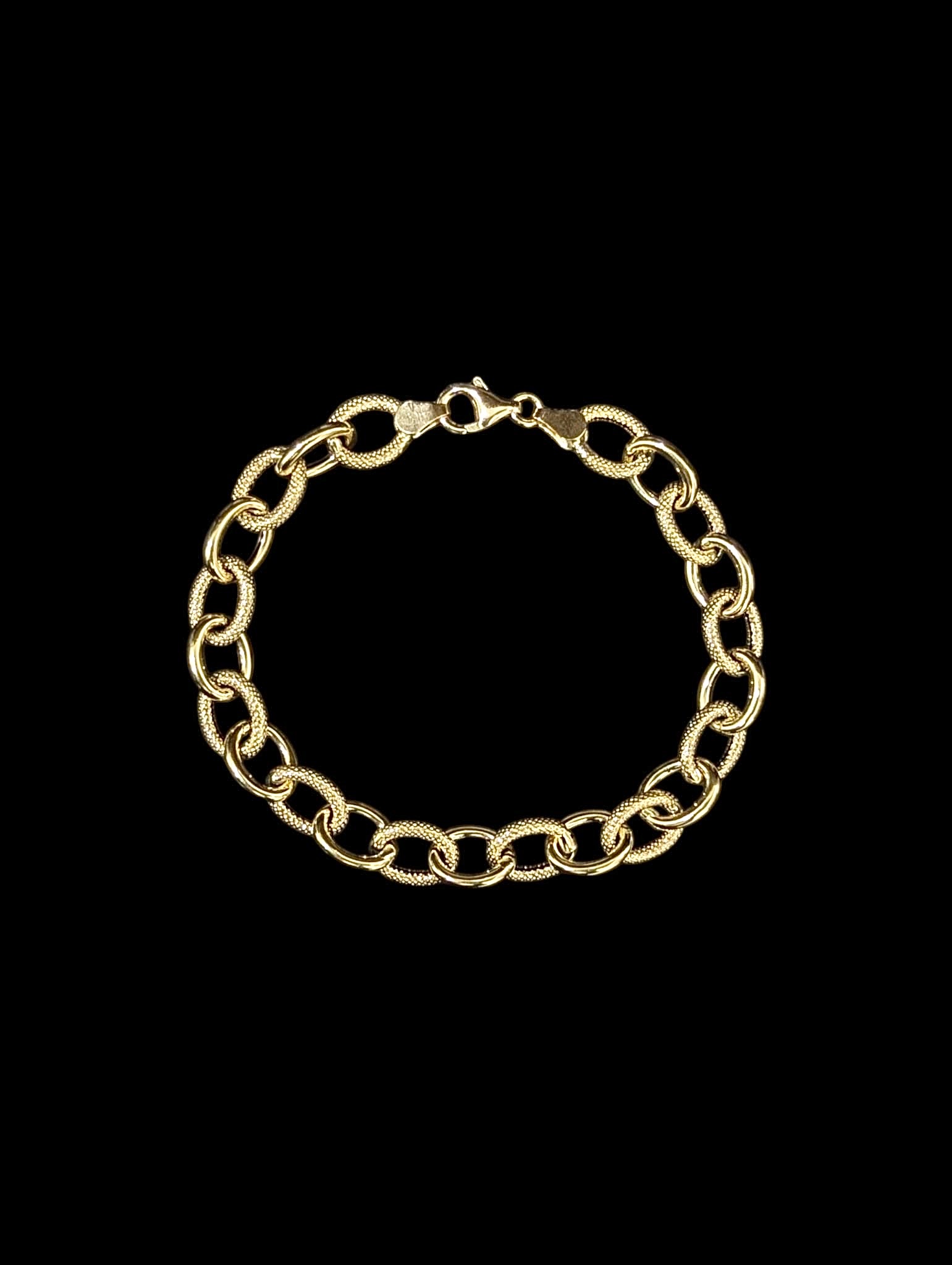 Bracelet maille forçat de finition 8 mm sur 19.5 cm de longueur, Fermoir anneau mousqueton.