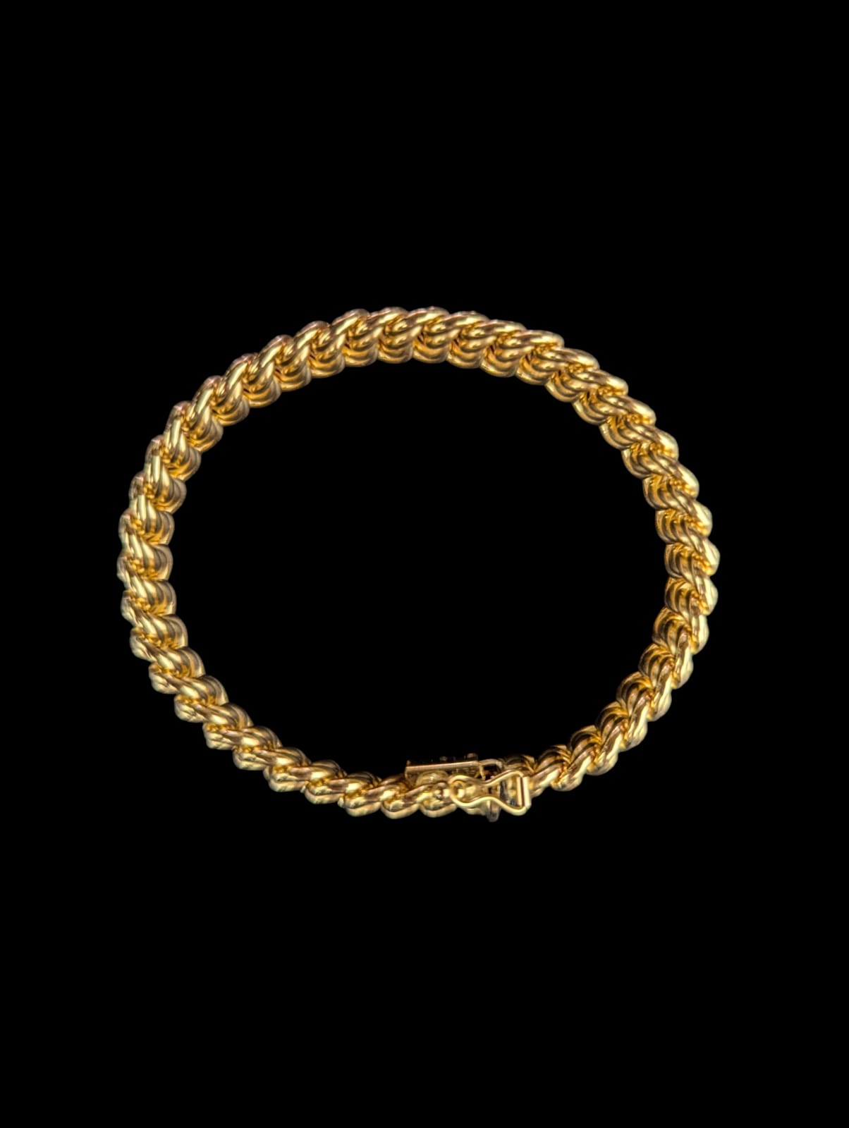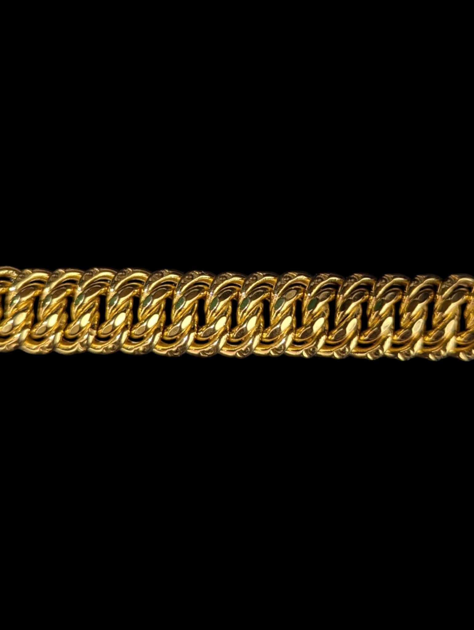 Bracelet maille amériaine lisse ,bordures striées, largeur 12 mm sur 19 cm de longueur,fermoir clicquet + 1 huit de sûreté