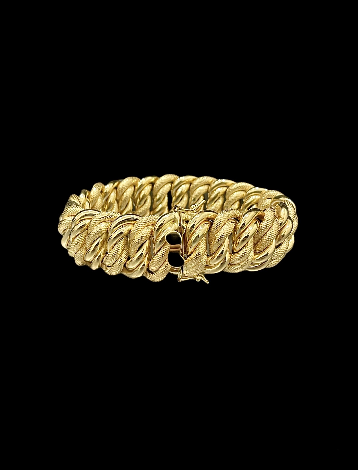 bracelet maille américaine sablé et lisse,largeur de maille 21 mm sur 21 cm de longueur,fermoir clicquet + double huit de sûreté