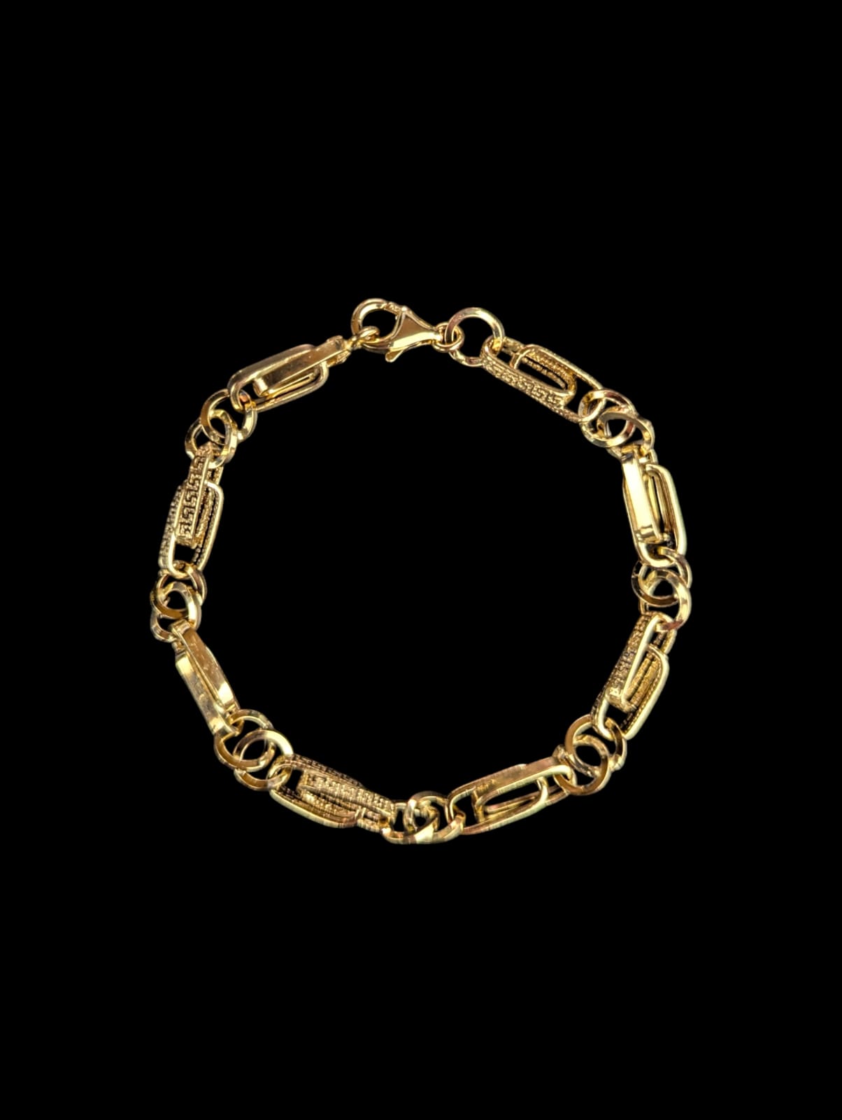 Bracelet maille disco de finition lisse et gravure style grec . Bracelet de largeur 4 mm sur 20 cm de longueur, fermoir mousqueton.