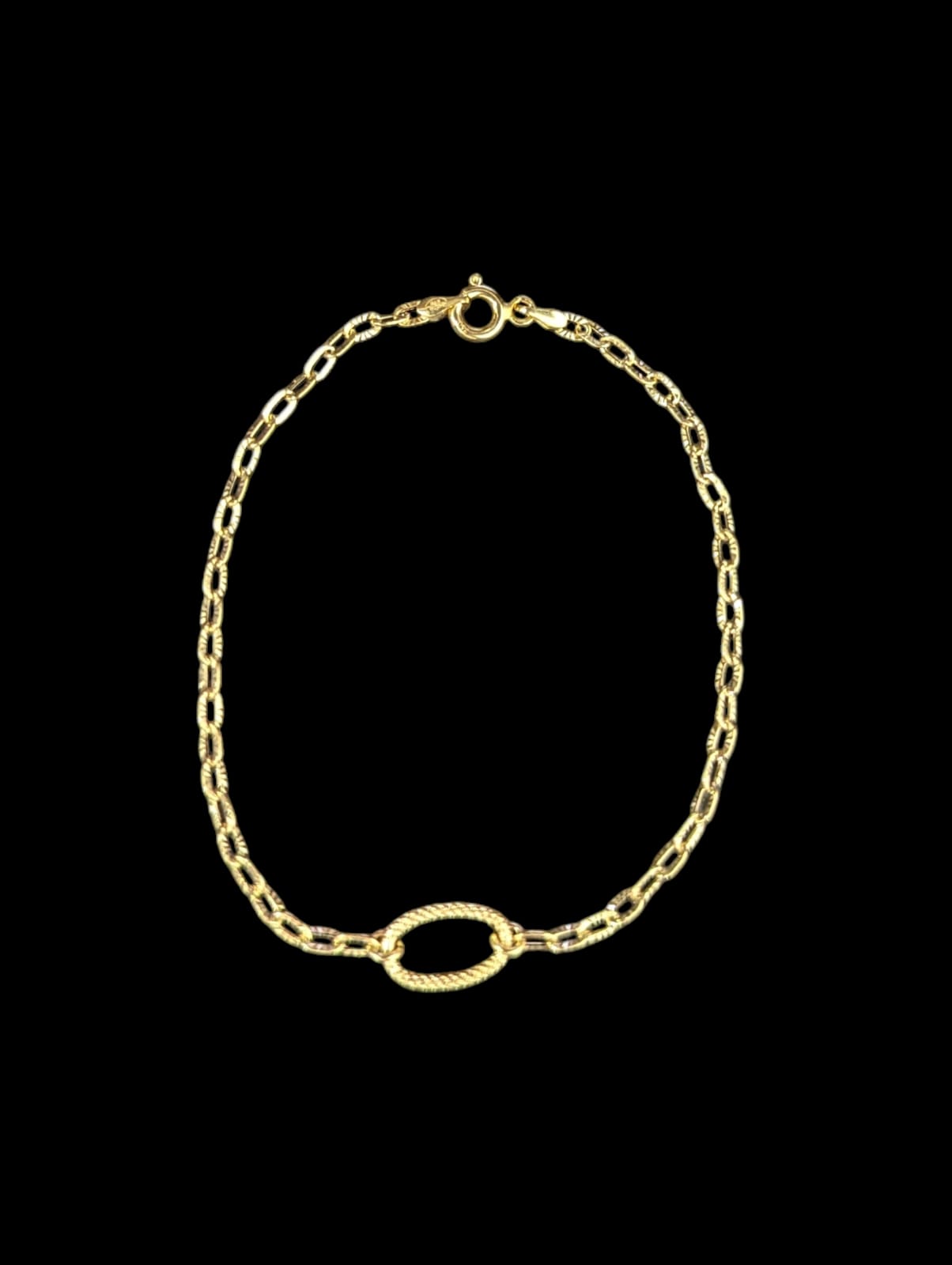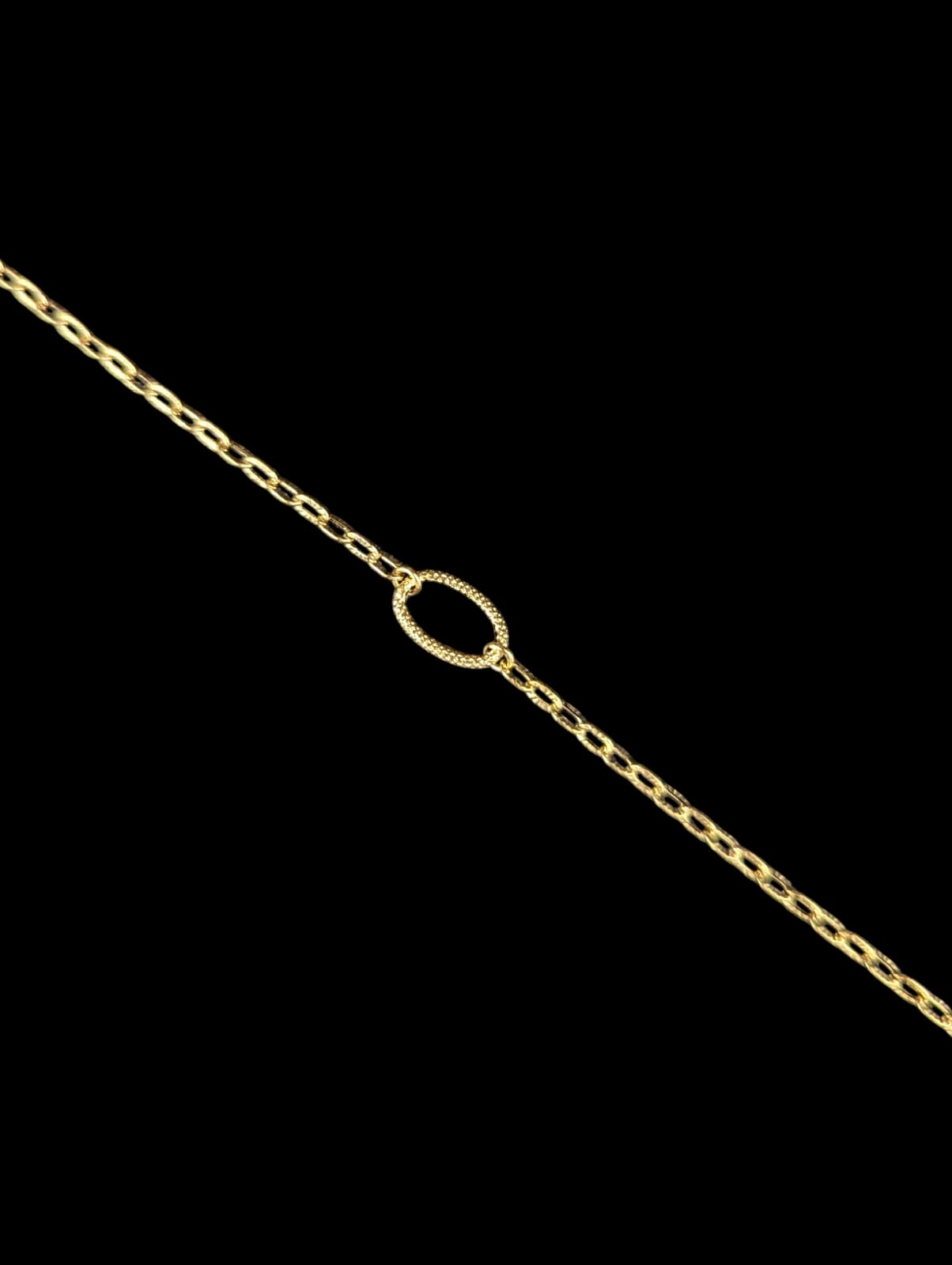 Bracelet maille forçat striée (2mm) avec 1 maille forçat ovale sablée(1cm de hauteur),longueur 19 cm,fermoir anneau ressort