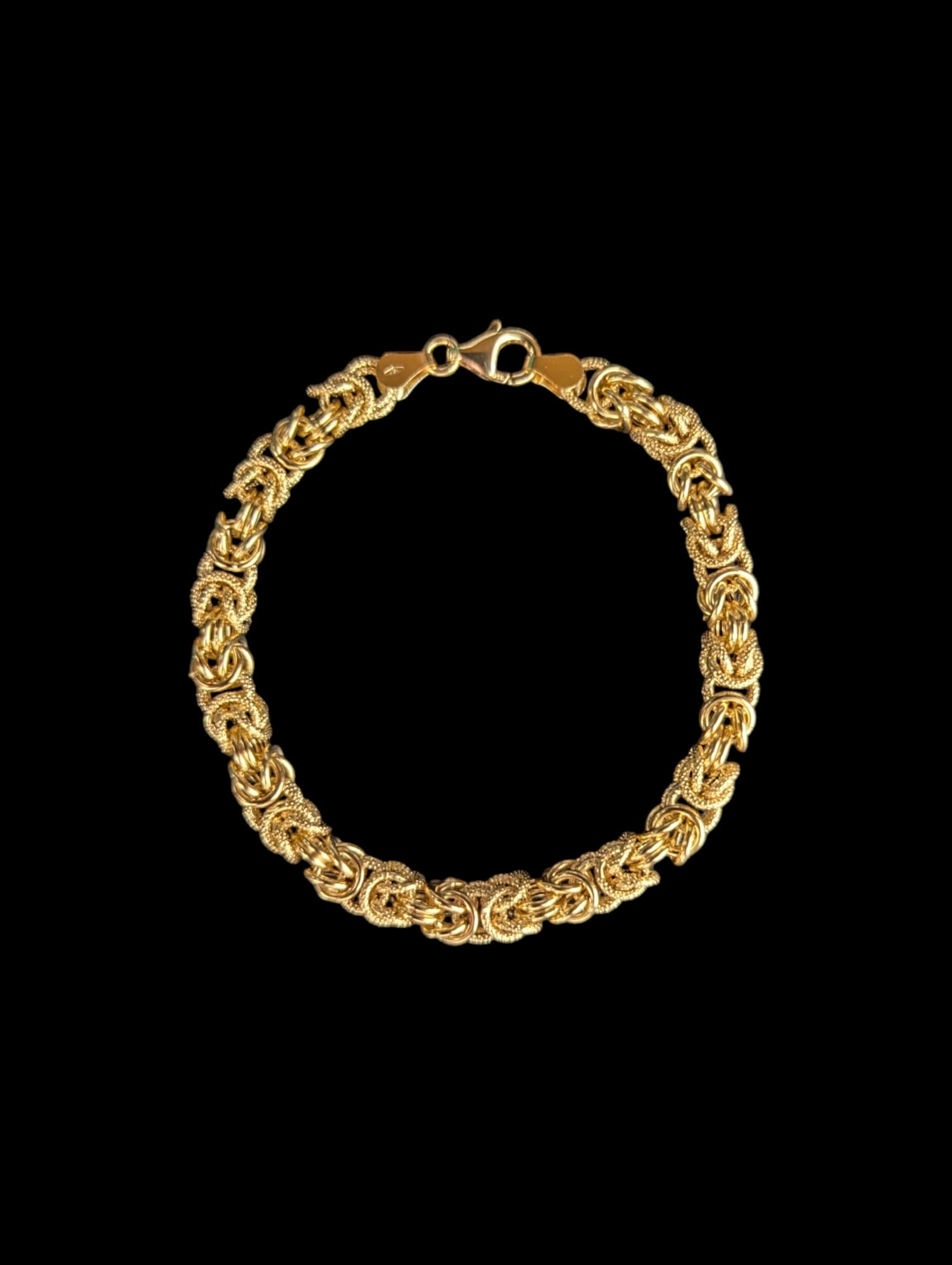Bracelet maille royal ronde lisse et sablée, largeur 6 mm sur 19 cm de longueur, fermoir mousqueton