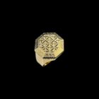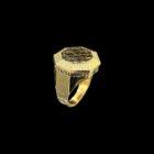 Chevalière octogone avec plateau quadrillé et détails contour grec en découpe. Chevalière de longueur 22 mm sur 22 mm de largeur.