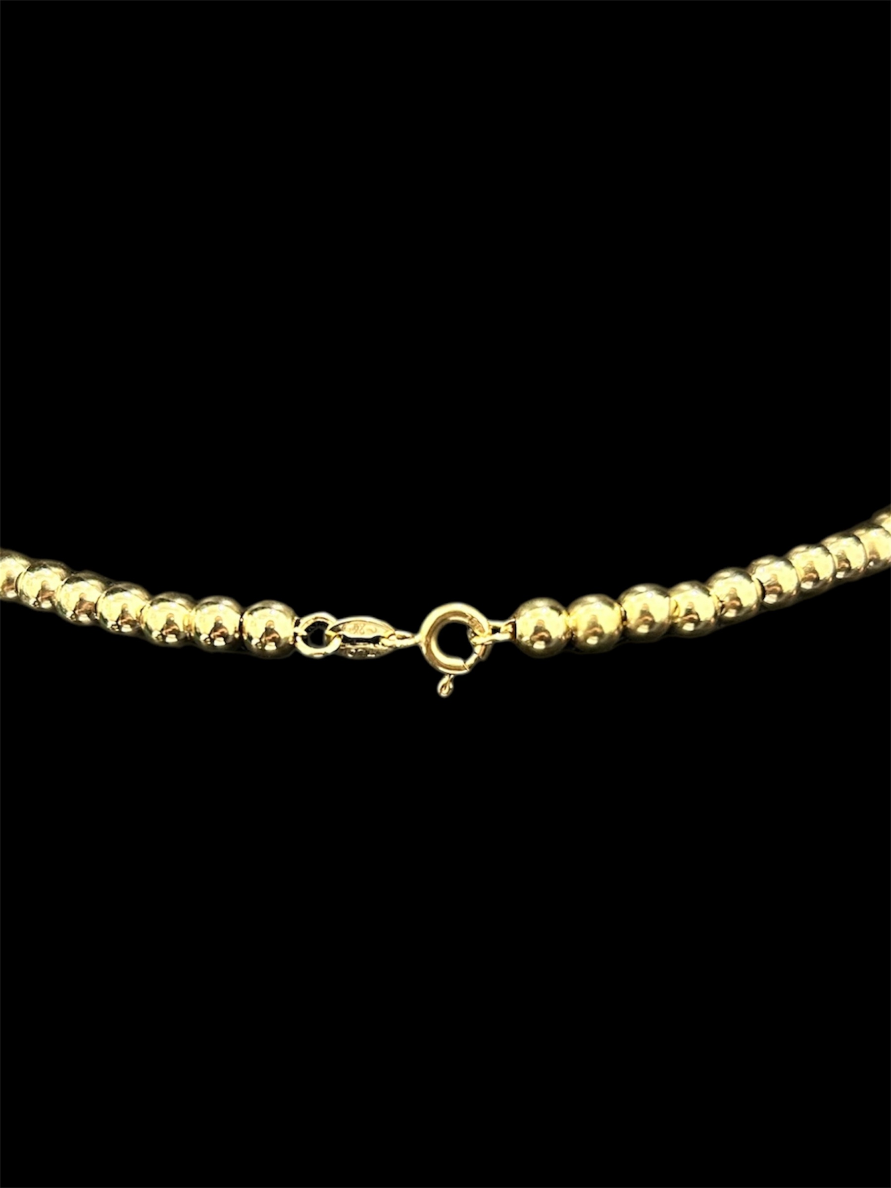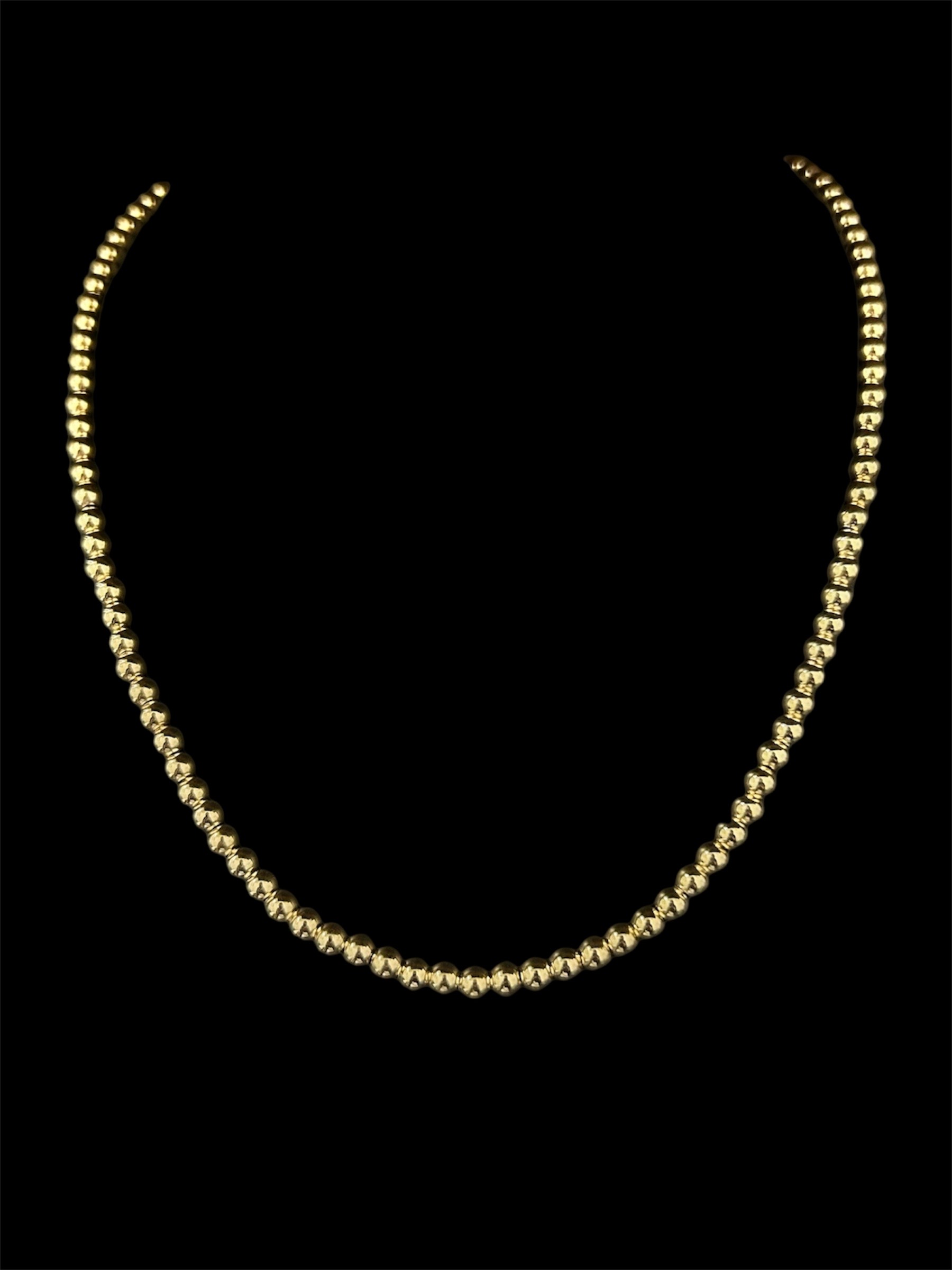 Collier Boules « Grain d’Or » droit avec des boules lisses de diamétre 4 mm sur 45 cm, fermoir anneau ressort
