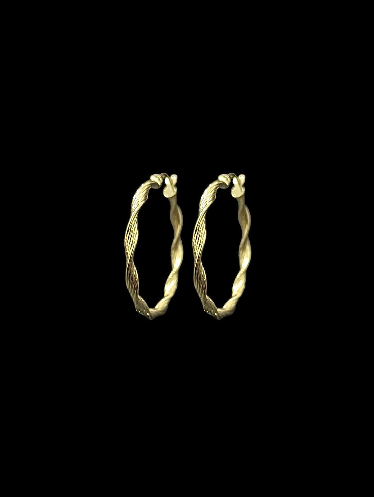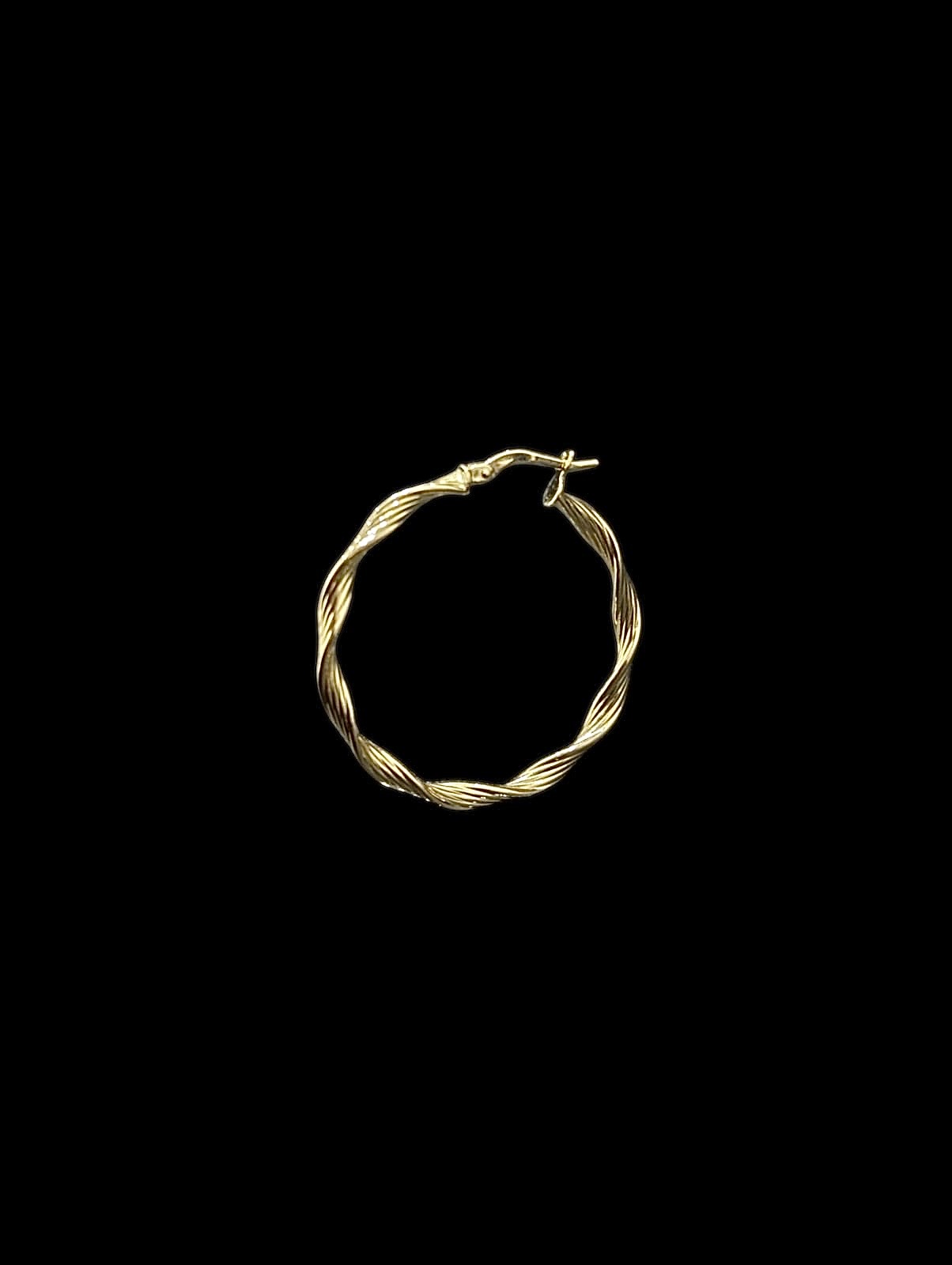 Créoles finition torsadées de diamètre 34 mm sur 3 mm d’épaisseur. Fermoir charnière.