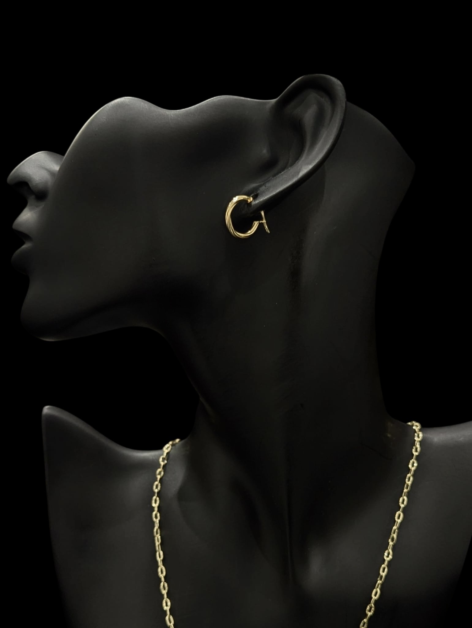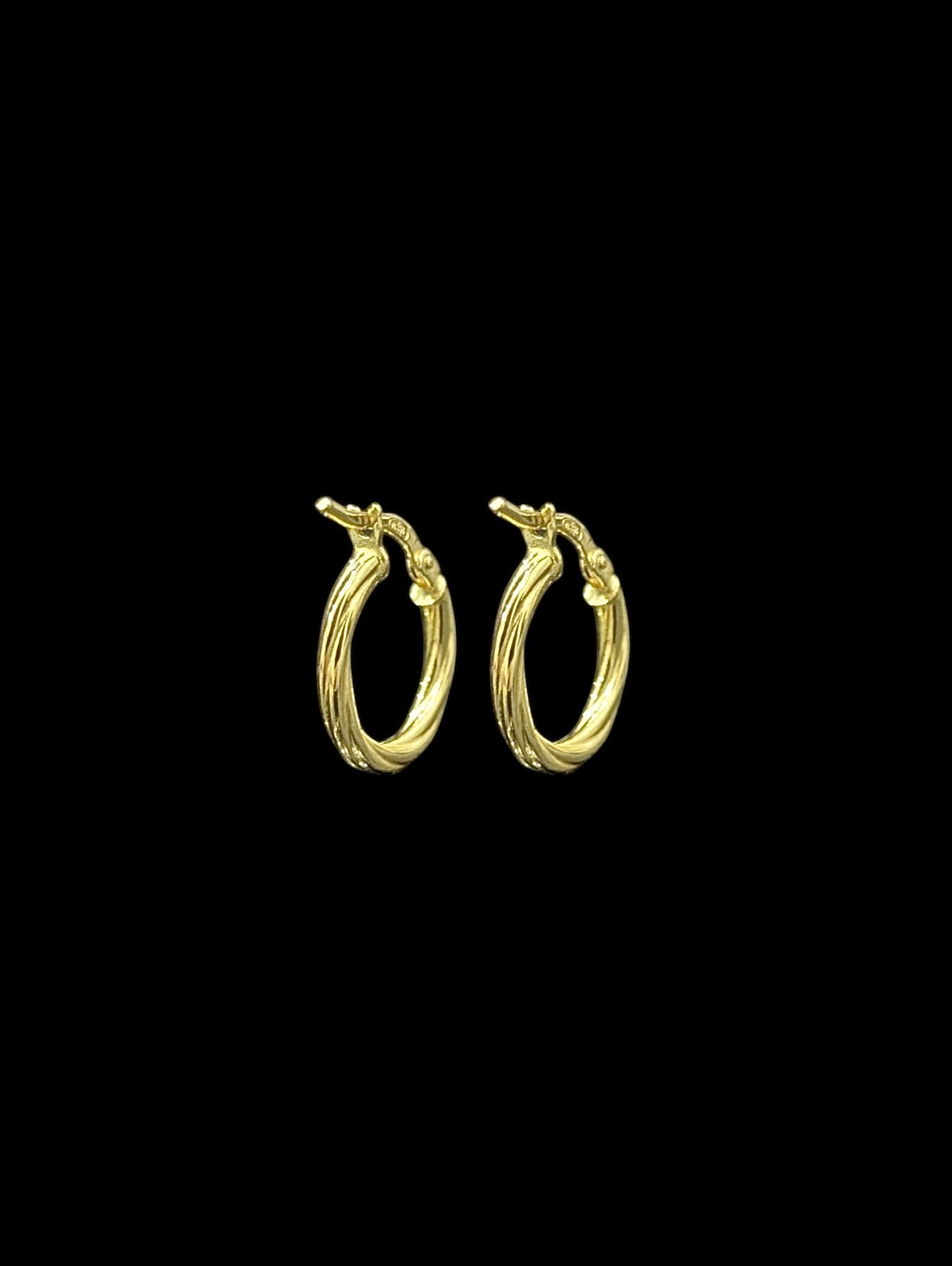 Créoles torsadées finition lisse de diamètre 14 mm sur 2 mm d’épaisseur. Fermoir charnière.