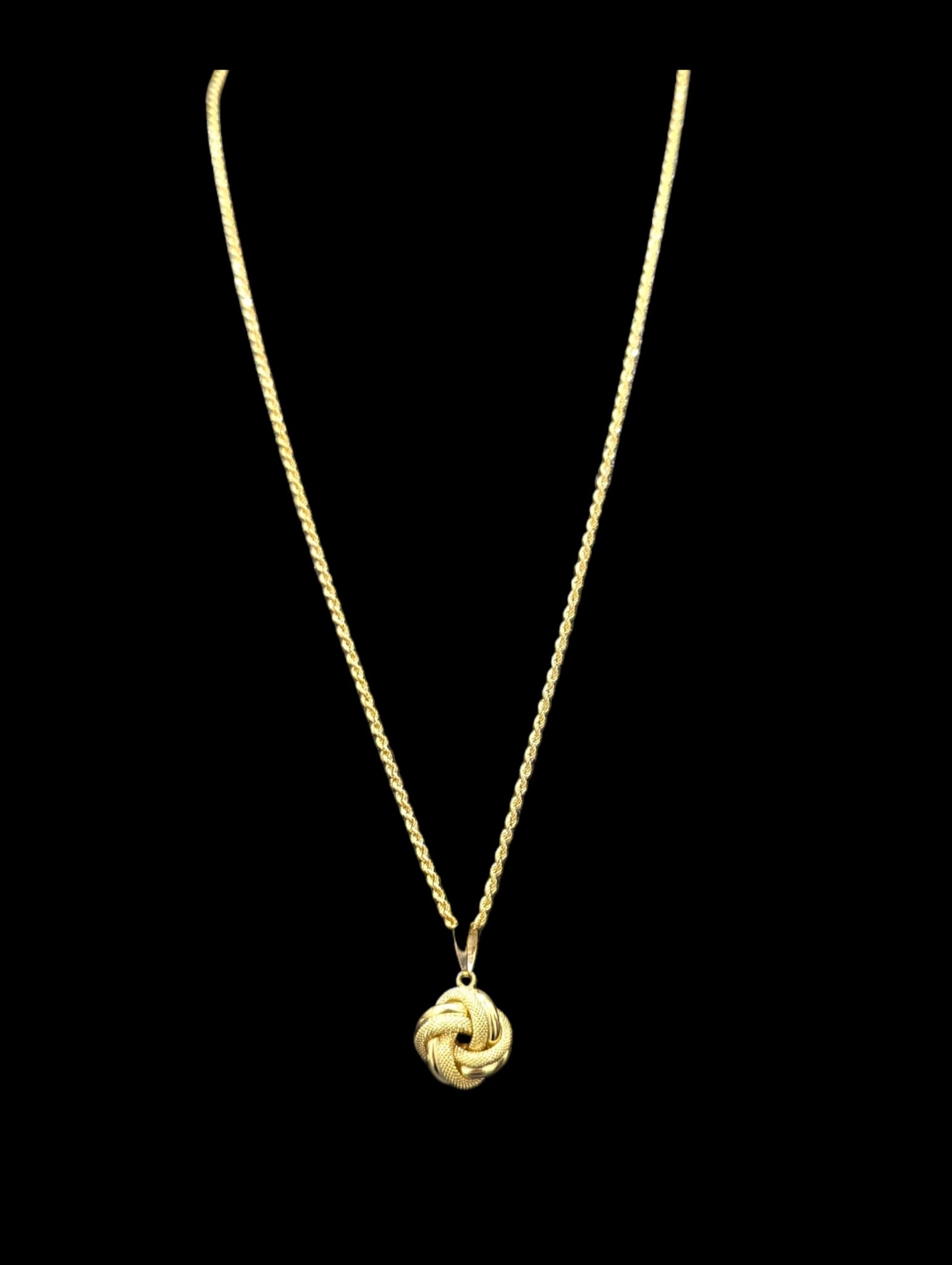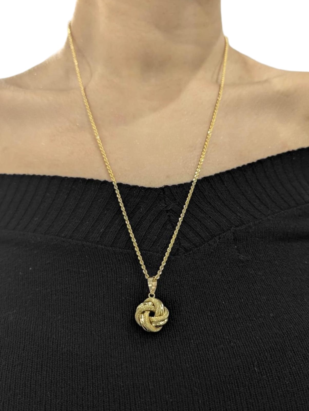 Chaine maille corde 1,5 mm de largeur sur 60 cm de longueur,fermoir anneau ressort + pendentif noeud XL 17 mm de diamétre