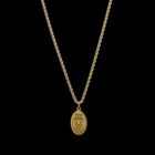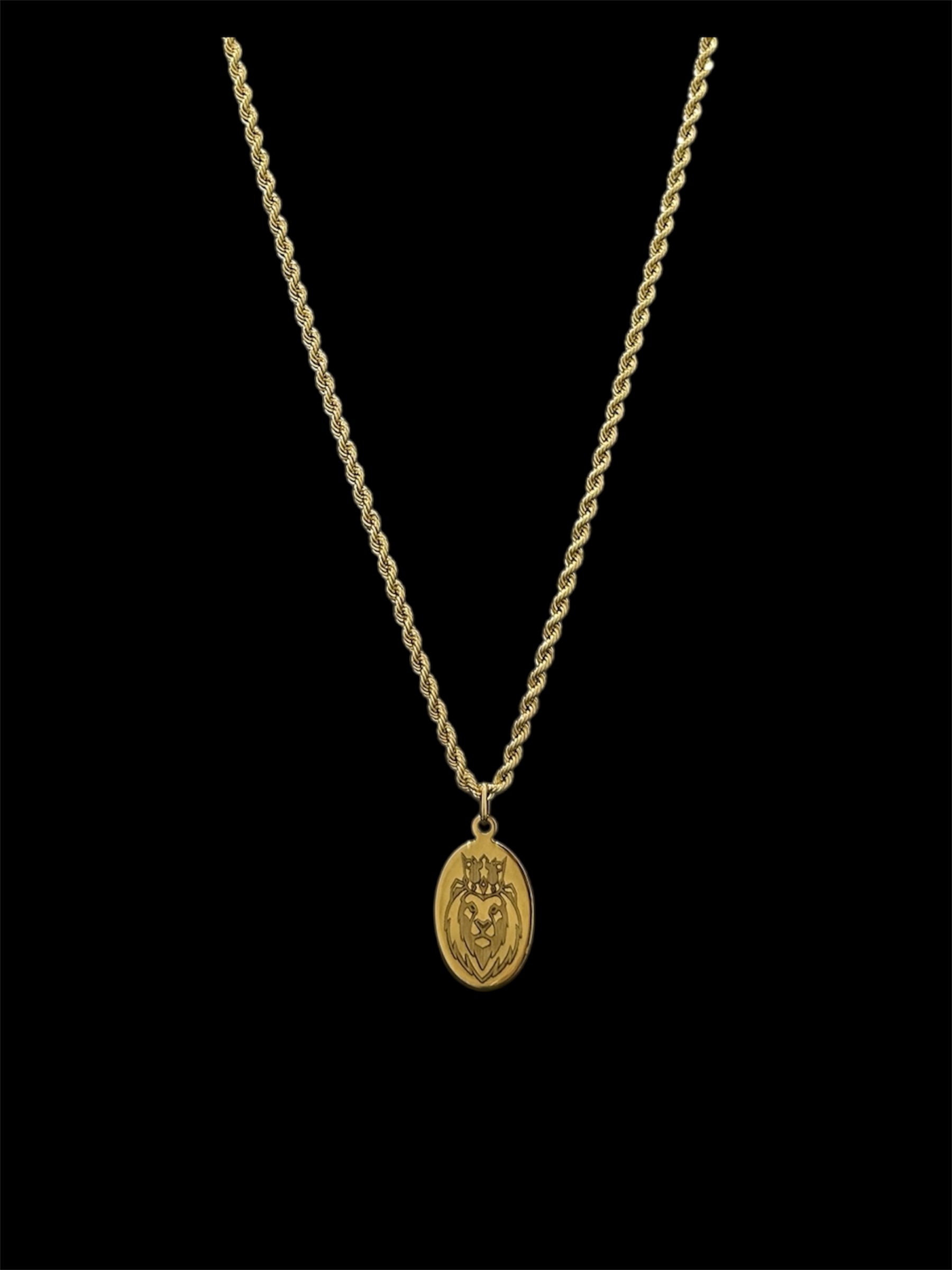 Ensemble Chaine Maille Corde 70 cm sur 2 mm de largeur,fermoir anneau ressort+ Pendentif Ovale avec gravure »Lion » 2,5 cm de hauteur