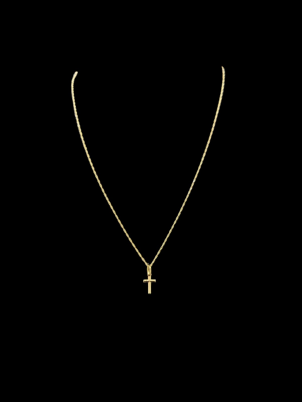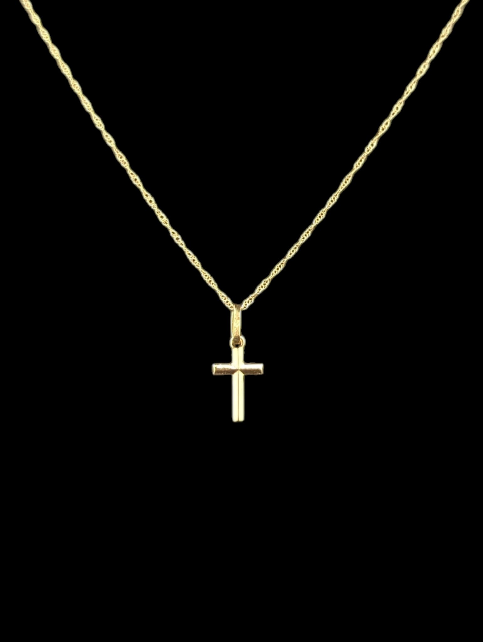 Ensemble chaine maille tortillon,largeur 0,5 mm sur 40 cm de longueur,fermoir anneau ressort + Pendentif petite Croix Lisse ,14 mm de hauteur