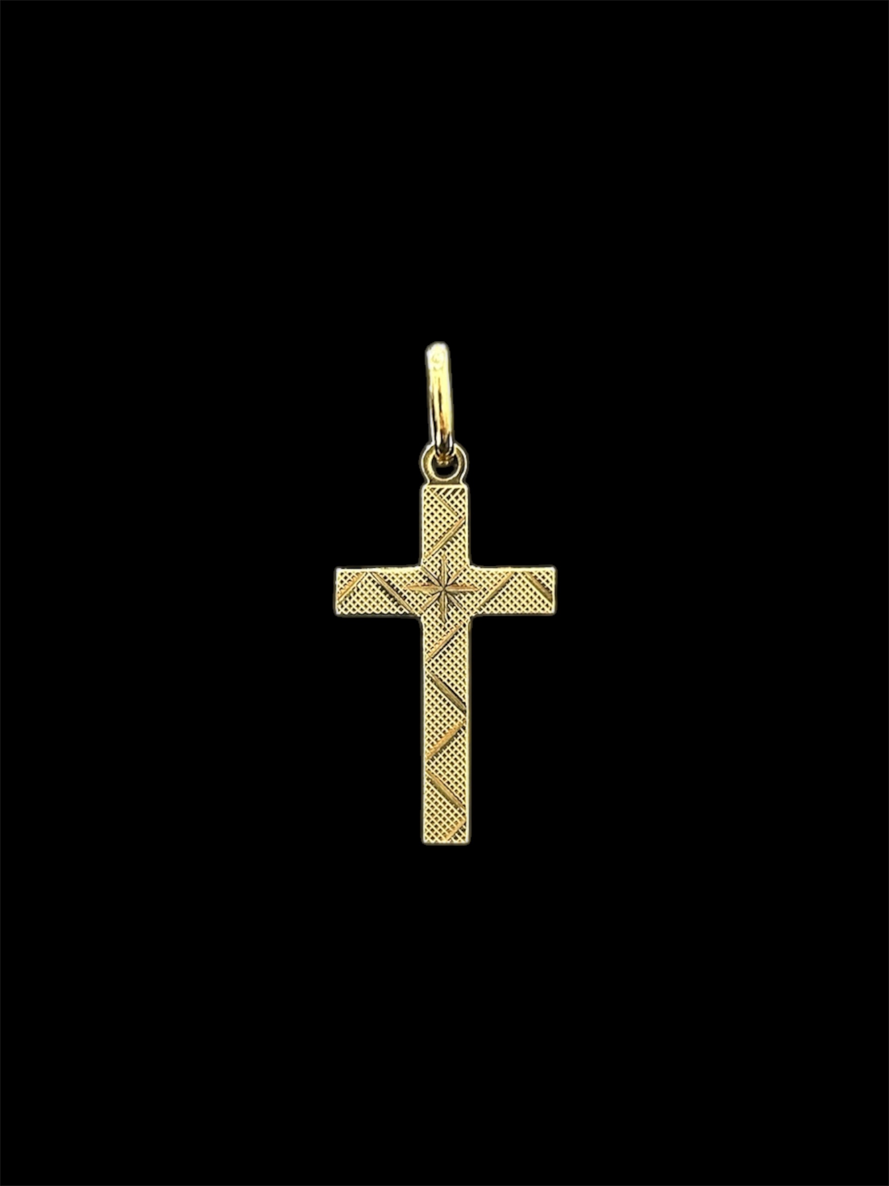 Pendentif en forme de croix, finition ciselée et sablée, apportant relief et caractère. Mesurant 30 mm de hauteur sur 15 mm de largeur, il est doté d’une bélière adaptée aux chaînes jusqu’à 5 mm. Un bijou élégant et symbolique aux finitions travaillées.