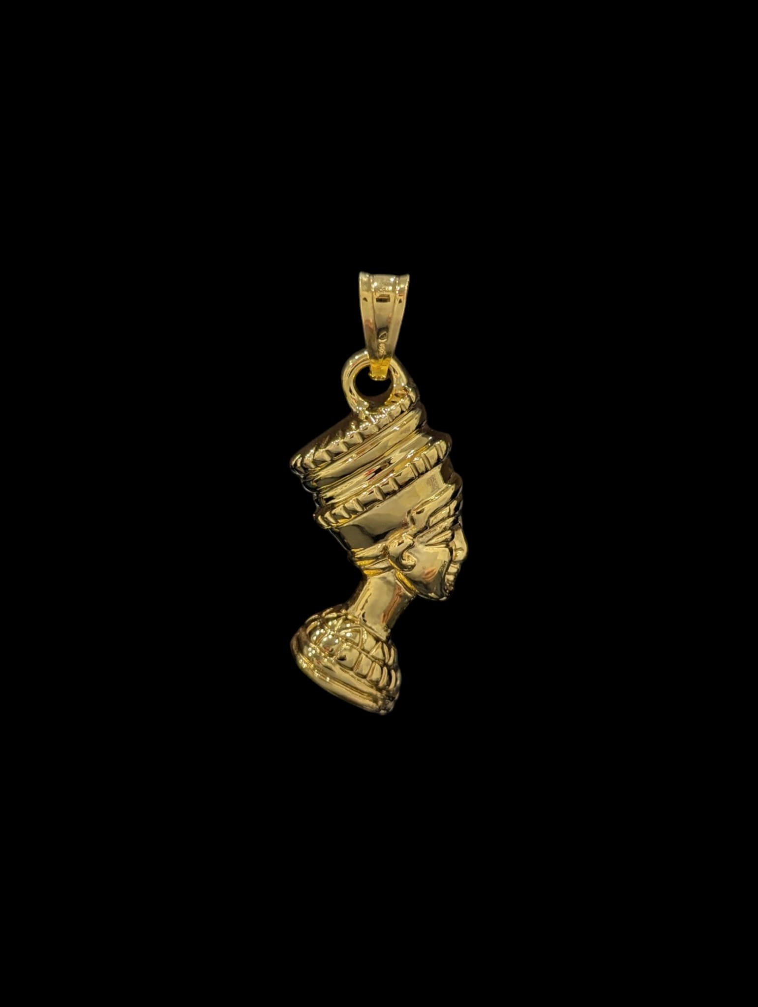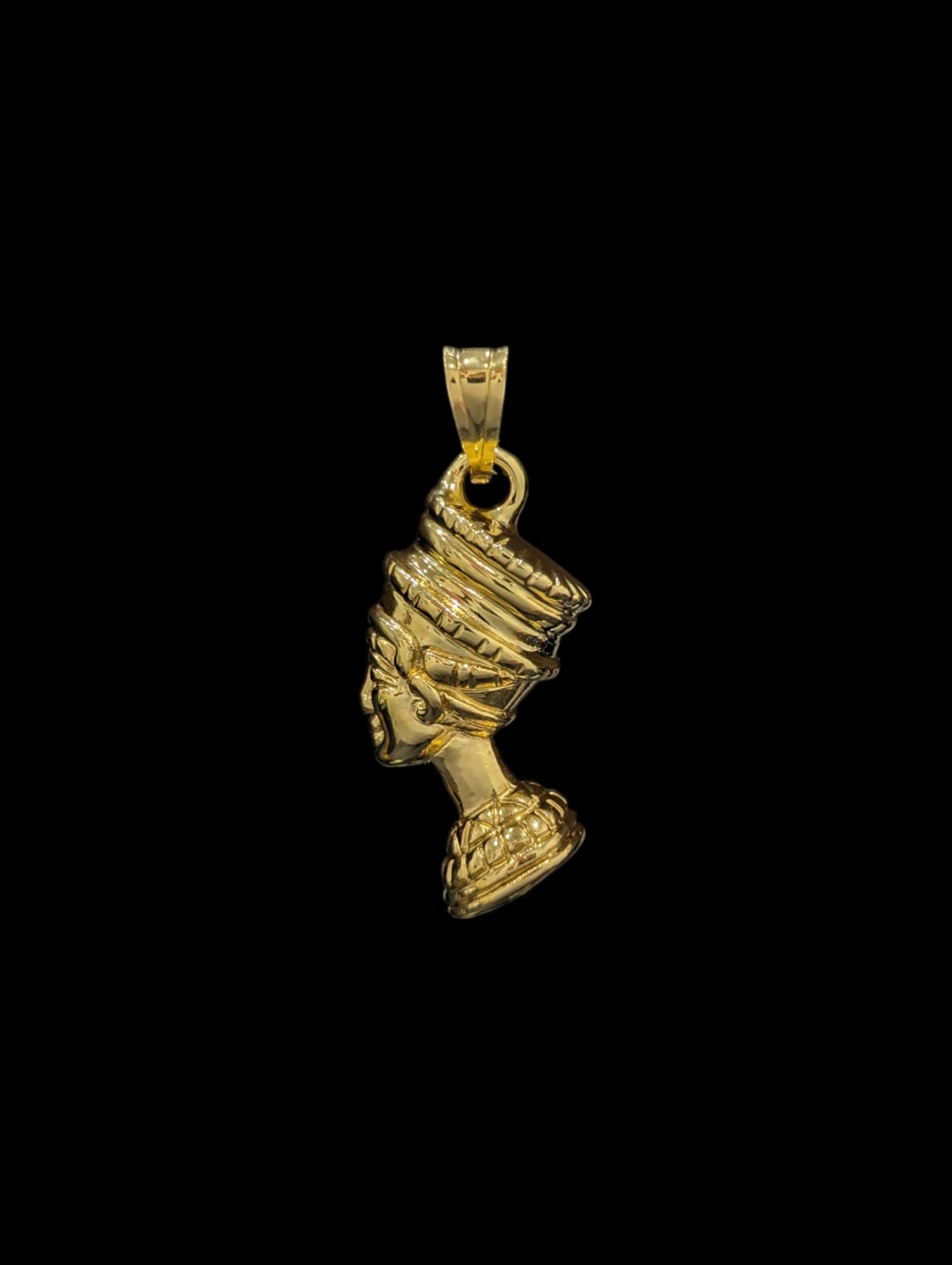 Pendentif en forme de Nefertiti recto verso,3d electroformé, 4,5 cm de hauteur sur 2 cm de largeur, bélière pour chaine 8 mm max